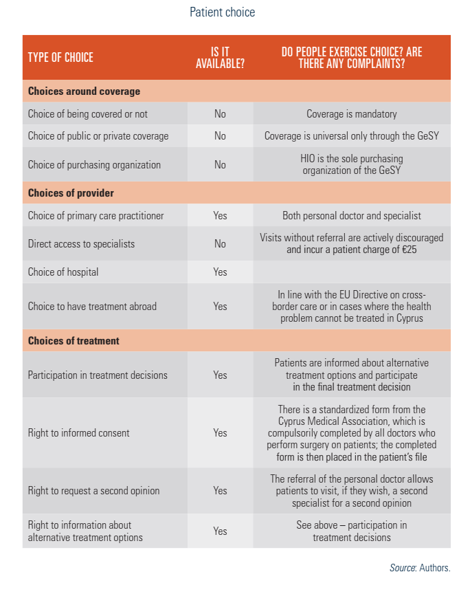 Within the GeSY, beneficiaries have more choice from a much larger number of providers, in both the public and the private sectors. In addition, they have the right to choose their personal doctor, who they can change after the completion of 12 months if desired (see Table2.3), stating the reason for the change. Beneficiaries can also choose a hospital or visit a specialist of their choice, following a referral from their personal doctor. Patient choice is facilitated by sufficient information on the HIO website, ensuring good knowledge of the system by beneficiaries.