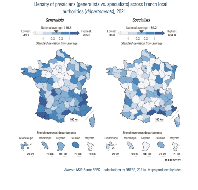 France faces significant and persistent geographical disparities in physician supply. Underserved medical areas remain a longstanding challenge, despite multiple reforms, including financial incentives to encourage physicians to establish practices in these areas.