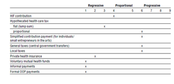 At the same time, a large share of health system financing in Hungary is private, consisting mainly of OOP payments, which by definition are strongly regressive. Table7.1 gives an overview of the progressivity of the main sources of health care financing in Hungary.