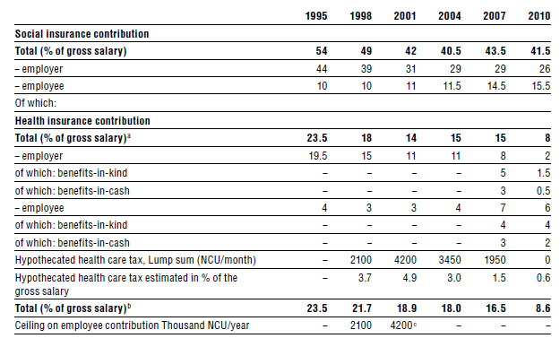 In 1996, the HIF contribution of the employers was decreased by three percentage points, which was the starting point of an enduring trend in the radical decrease of the employer contribution rate coupled with the more rapidly increasing deficit of the HIF, throughout the following decade. This policy aimed at improving international competitiveness, boosting economic growth and stimulating the employment level. The potential consequences on HIF revenue were not addressed in a systematic manner.