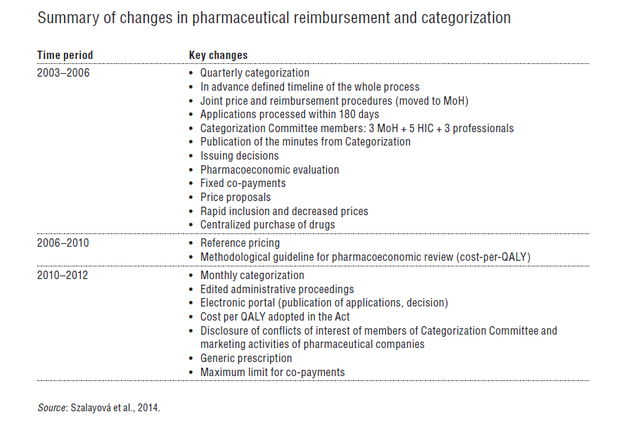 For the summary of changes in pharmaceutical reimbursement and categorization, see Table2.4.