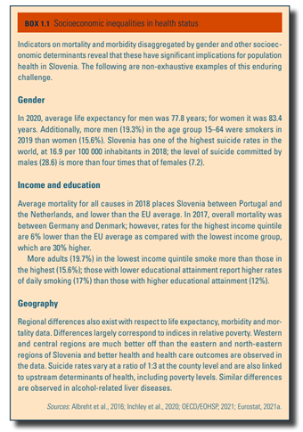 See Box1.1 for more information on the gender and socioeconomic dimension of health status.
