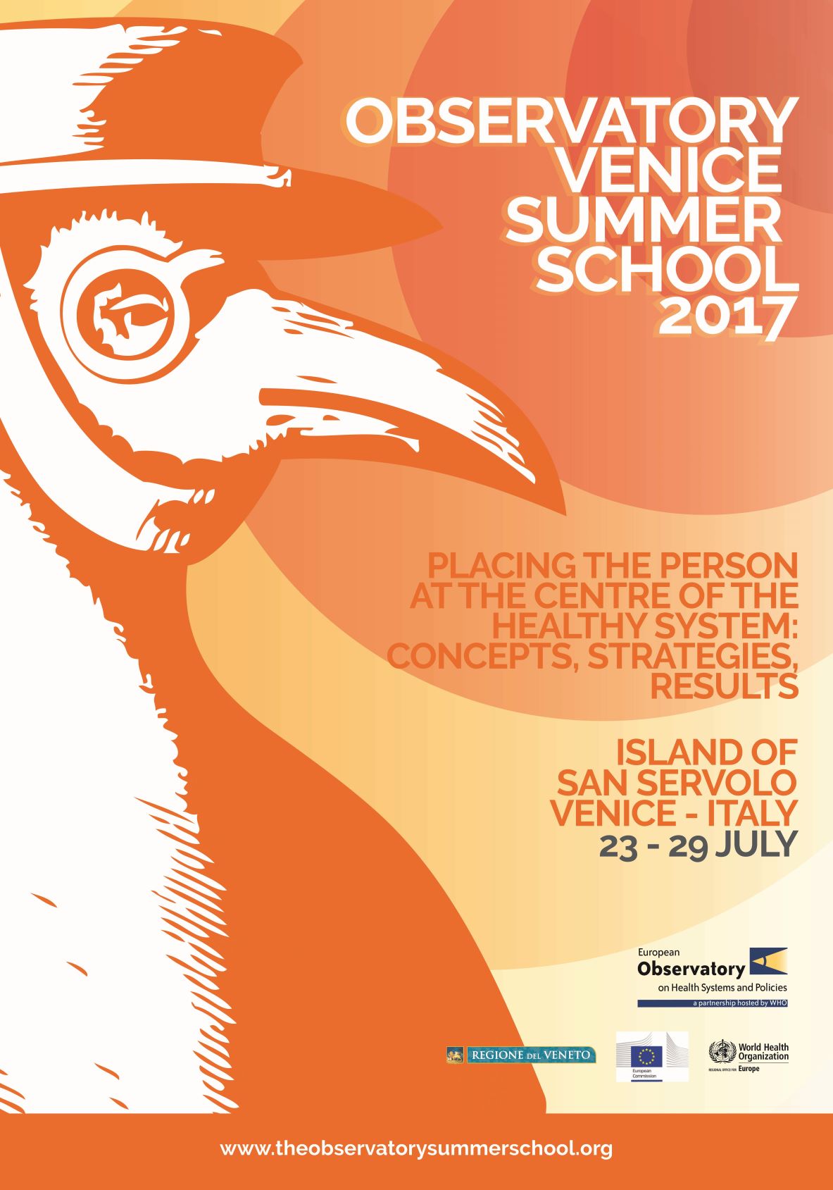 The Observatory Venice Summer School 2017 is a one week intensive course that brings together policy makers, planners, managers, professionals and civil society representatives who will be learning, debating and sharing experiences about the conceptual, strategic and practical issues around achieving person‐centred health systems.